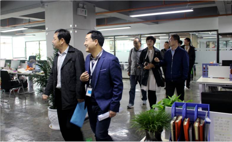 在开创教育叶校长的引领下,领导们参观了互联集团的办公区域。在叶校长和互联集团副总赵峰军、龙金明的讲解下深入了解了互联集团的发展历程、集团未来规划、企业人文等。在此过程中,各位领导就互联集团的现目前的发展模式和发展规划为互联集团及旗下开创教育等服务领域提出了更加适合互联集团发展的宝贵意见与建议。