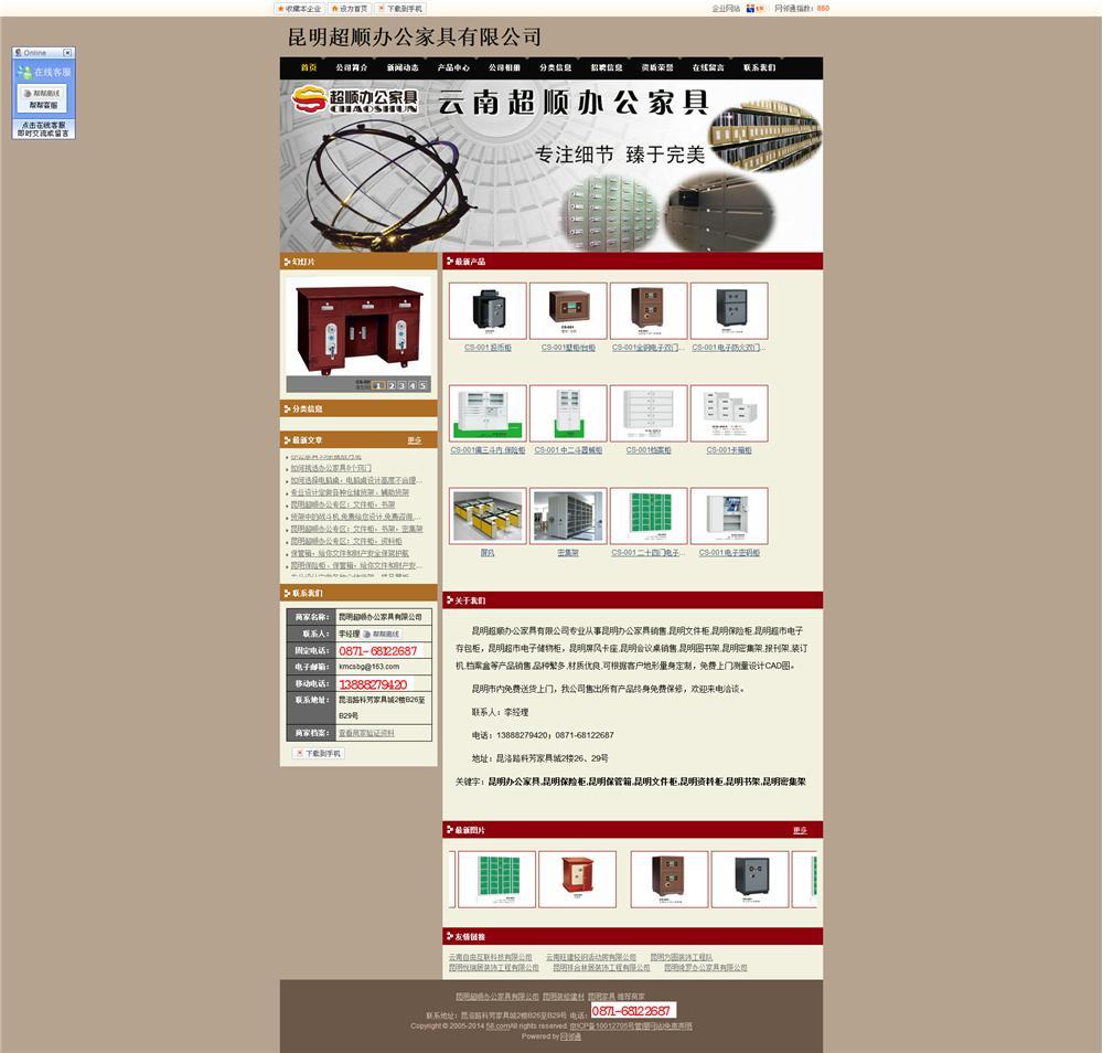 昆明超顺办公家具有限公司专业从事昆明办公家具销售,昆明文件柜,昆明保险柜,昆明超市电子存包柜,昆明超市电子储物柜,昆明屏风卡座,昆明会议桌销售,昆明图书架,昆明密集架,报刊架,装订机,档案盒等产品销售,品种繁多,材质优良,可根据客户地形量身定制,免费上门测量设计CAD图。