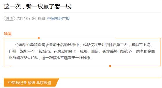 人民网根据报告数据,发布《2017年毕业生就业区域流向:新一线城市成求职专宠》报道。