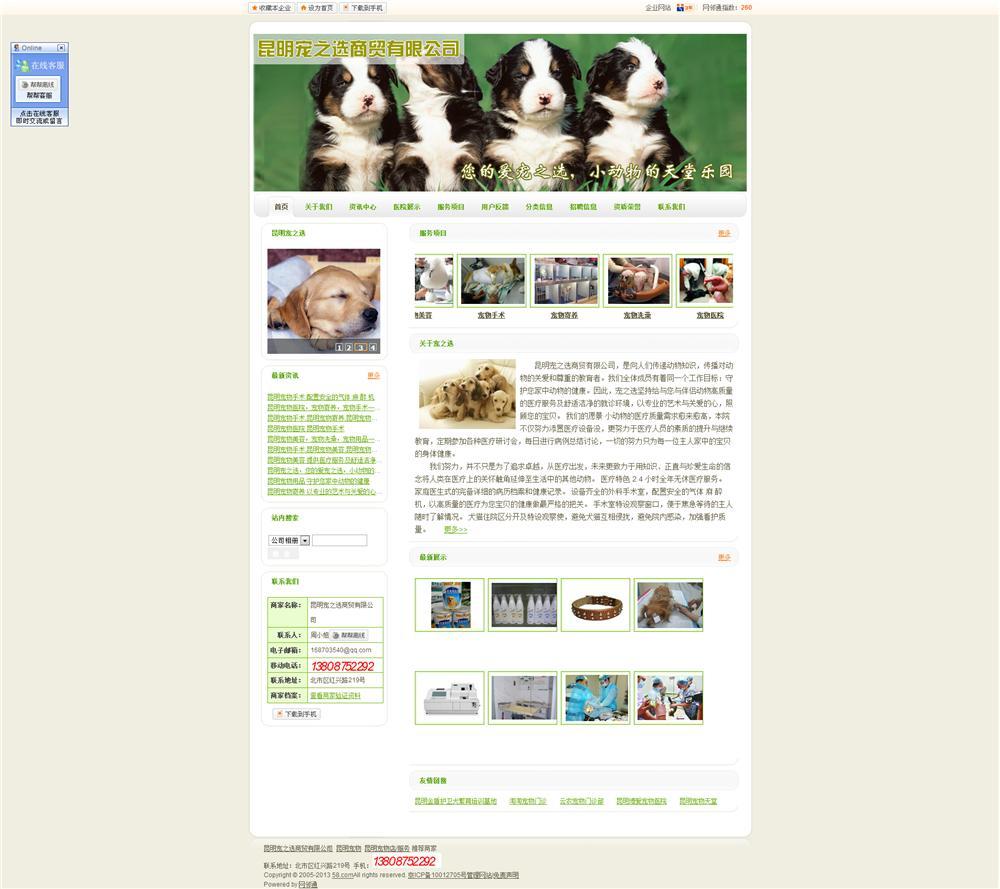 昆明宠之选商贸有限公司是集宠物医疗、用品、美容、寄养为一体的专业宠物服务店,自2005年发展至今,现代理多个国内外知名宠物犬粮(在昆明几个主要宠物市场和大型社区设有四家店面:北市区和谐世纪、南市区佳湖新城店、园博花鸟市场、春苑花鸟宠物大世界。