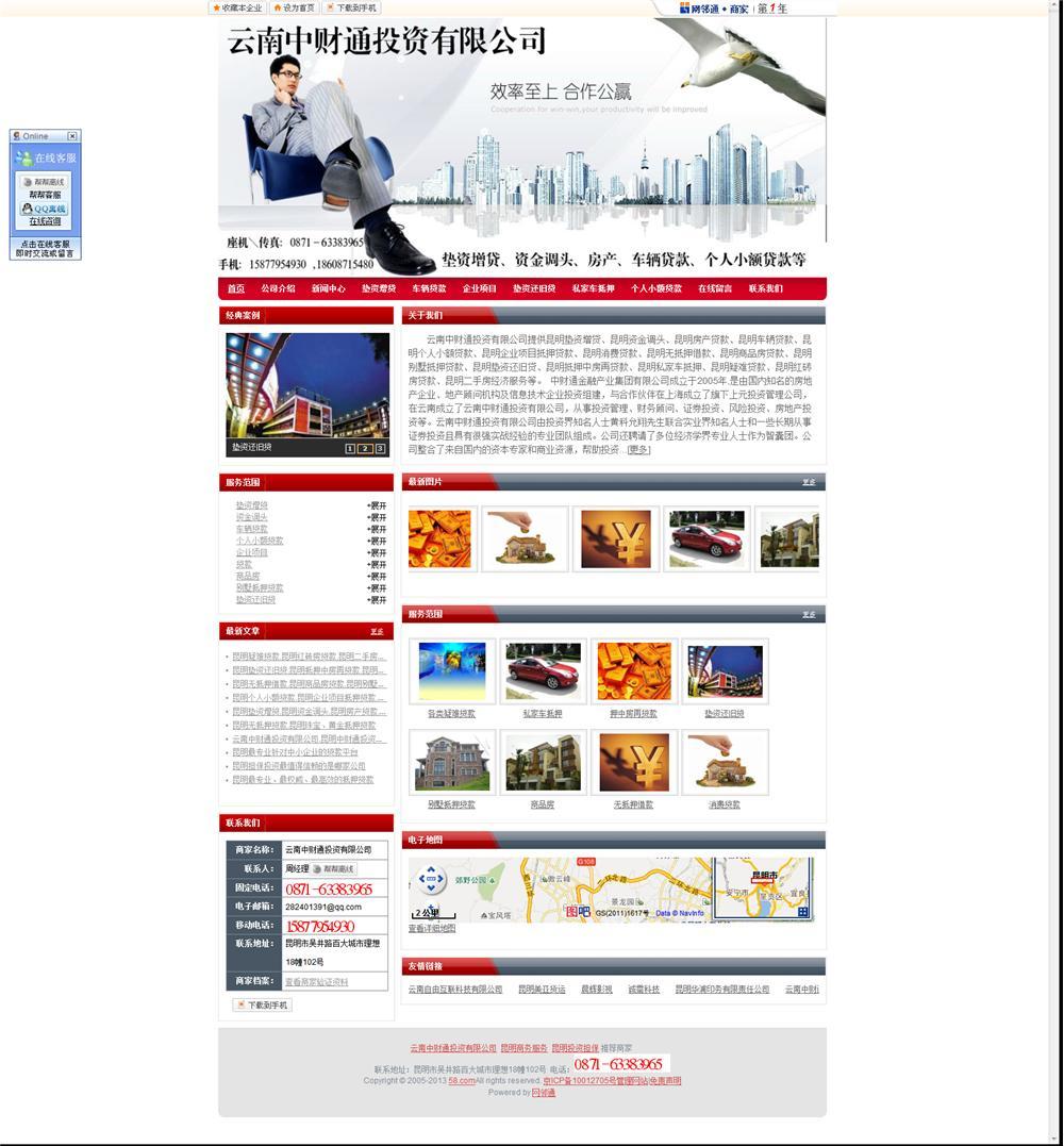 云南中财通投资有限公司提供昆明垫资增贷、昆明资金调头、昆明房产贷款、昆明车辆贷款、昆明个人小额贷款、昆明企业项目抵押贷款、昆明消费贷款、昆明无抵押借款、昆明商品房贷款、昆明别墅抵押贷款、昆明垫资还旧贷、昆明抵押中房再贷款、昆明私家车抵押、昆明疑难贷款、昆明红砖房贷款、昆明二手房经济服务等。